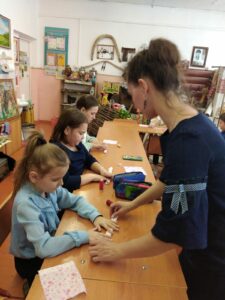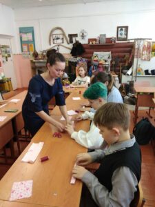 На этот раз ребята вместе с руководителем делали славянскую куклу Кувадку.